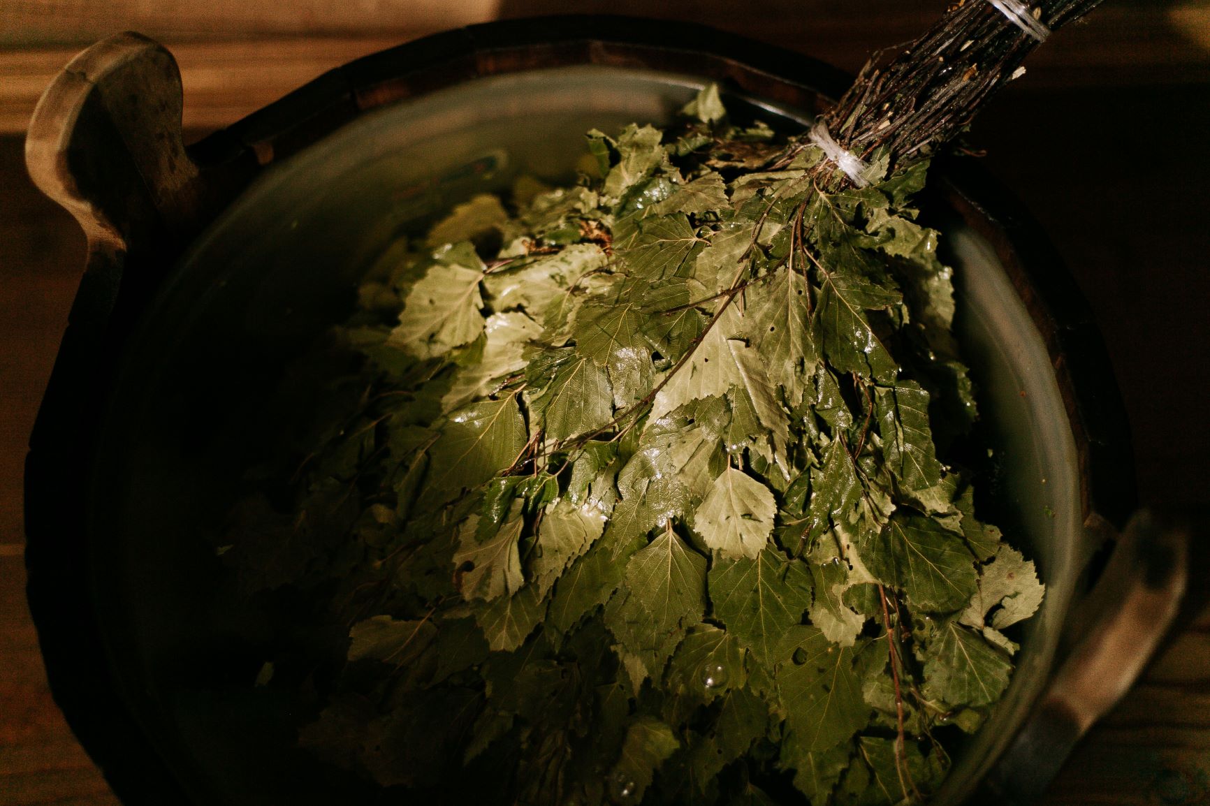 - В этот раз в парилке можно пробыть дольше – 10-25 минут. Со 2-3-го захода можно начинать использовать веник. Париться веником удобнее всего вдвоем. Посетитель ложится на живот. Банщик вначале поглаживает его тело веником, начиная от пяток и двигаясь к шее. Затем поглаживания становятся более интенсивными и превращаются в постегивания, после – в похлестывания. Когда проработаны стопы, ноги, бедра, таз, поясница, спина, плечи и руки, посетитель переворачивается на спину. Банщик повторяет процедуру для этой части тела. Живот и область сердца обрабатываются веником чрезвычайно осторожно. Если используются 2 веника, можно делать «растяжку». Веники соединяются в области поясницы, затем один из них движется к шее, а второй – к пяткам.